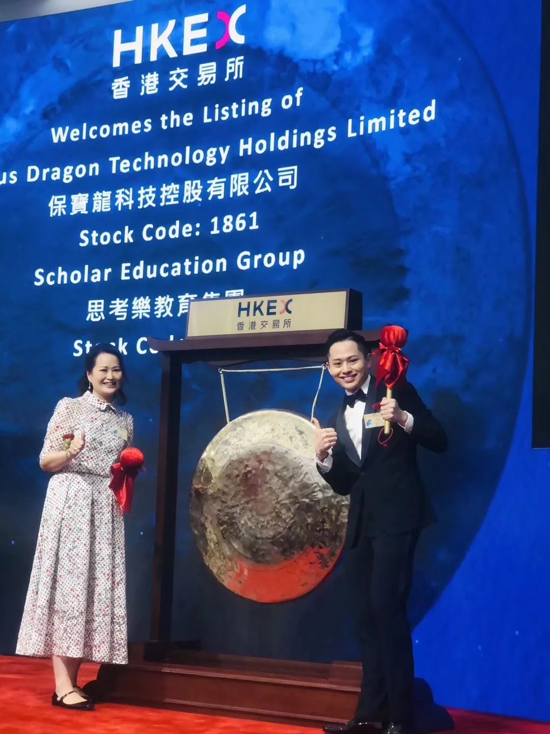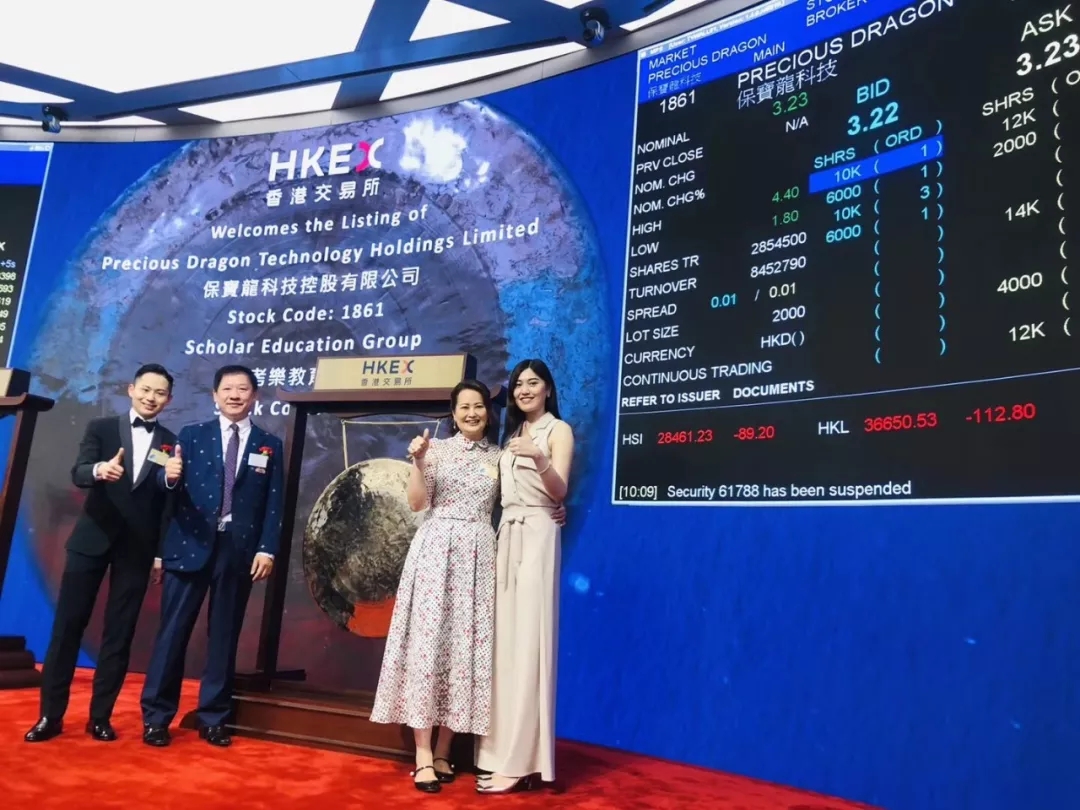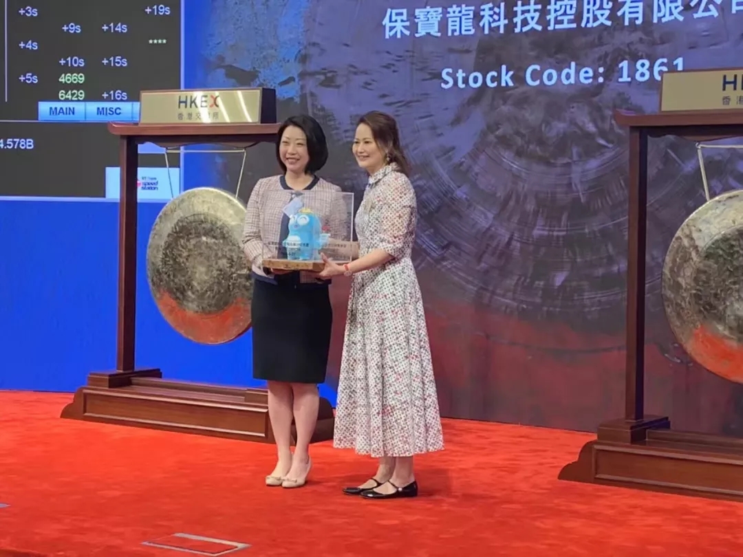 2019年6月21日9時30分,在香港聯(lián)合交易所觀禮臺,保寶龍科技控股有限公司(簡稱:保寶龍科技)董事會主席高秀媚女士和執(zhí)行董事連興隆先生敲響了上市的鑼聲;這響徹交易大廳的鑼聲,宣告了保寶龍科技控股有限公司正式登陸港股,股份代號:1861.HK。