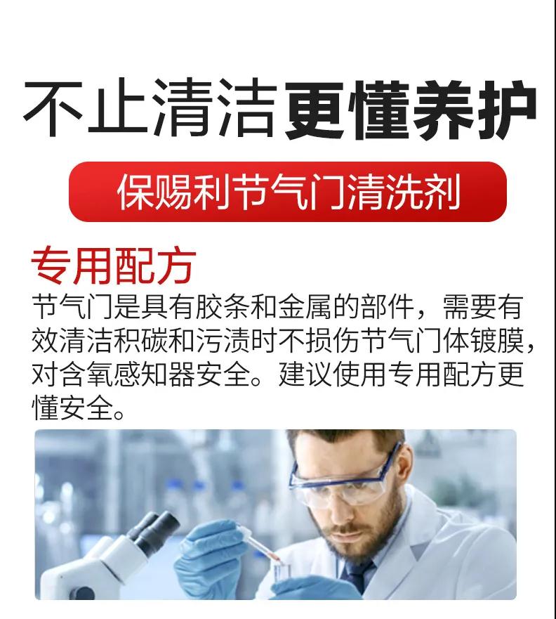 保賜利節(jié)氣門清洗劑,快速清除發(fā)動(dòng)機(jī)“咽喉”節(jié)氣門積碳油泥,恢復(fù)澎湃動(dòng)力。