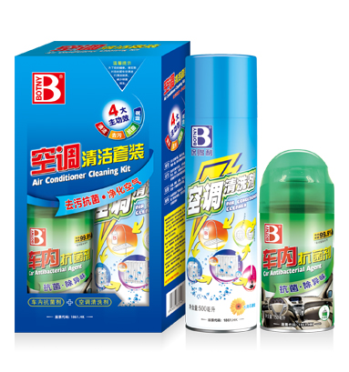 本套裝含空調清洗劑、車內抗菌劑兩款產品。可深入空調內部,清洗空調內風扇、交換器上的灰塵、油垢、蟲漬和其它雜物,延長空調使用壽命;并能有效去除車內因日常使用所滋生的霉菌、細菌以及煙味等,為您營造一個健康的駕車環境